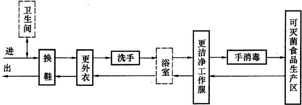 圖5.4.3 可滅菌食品生產(chǎn)區人員凈化程序