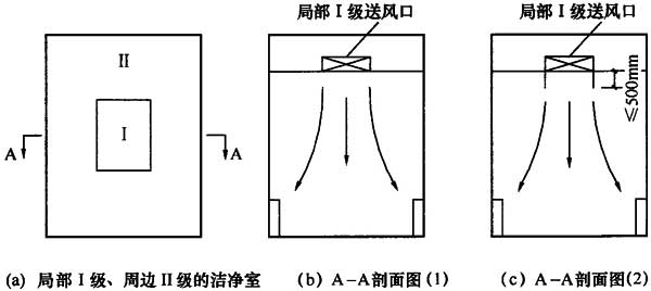 時(shí),背景環(huán)境可不另設送風(fēng)口。這一方法已被現行國家標準《醫院潔凈手術(shù)部建筑技術(shù)規范》GB 50333所采用,也被俄羅斯醫院標準所采用。需要注意的是本條款不適用于自循環(huán)的送風(fēng)末端(如FFU、層流罩等),當局部Ⅰ級采用自循環(huán)的送風(fēng)末端時(shí),背景環(huán)境宜另設送風(fēng)口。